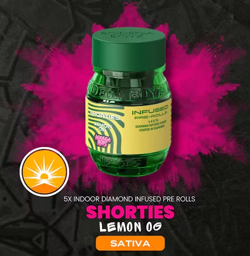 Ignite your senses with Lemon OG Shorties - a citrusy delight ensuring a terpene-rich experience that invigorates with every inhale. Each joint is meticulously crafted with .7 grams of premium flower, infused with diamonds, and coated with premium Bodega Boyz thca diamonds, housed in a stylish barrel stash jar. Immerse yourself in the tangy essence of lemon, uplifted by the tranquil undertones of OG Kush for a smoke session that's both refreshing and relaxing. Whether you're unwinding after a long day or seeking inspiration for your next adventure, Lemon OG Shorties offer a flavorful escape to a citrus paradise. It's time to savor the zest and embrace the laid-back vibes of this classic blend. Reusable ceramic tips make this experience hit different.