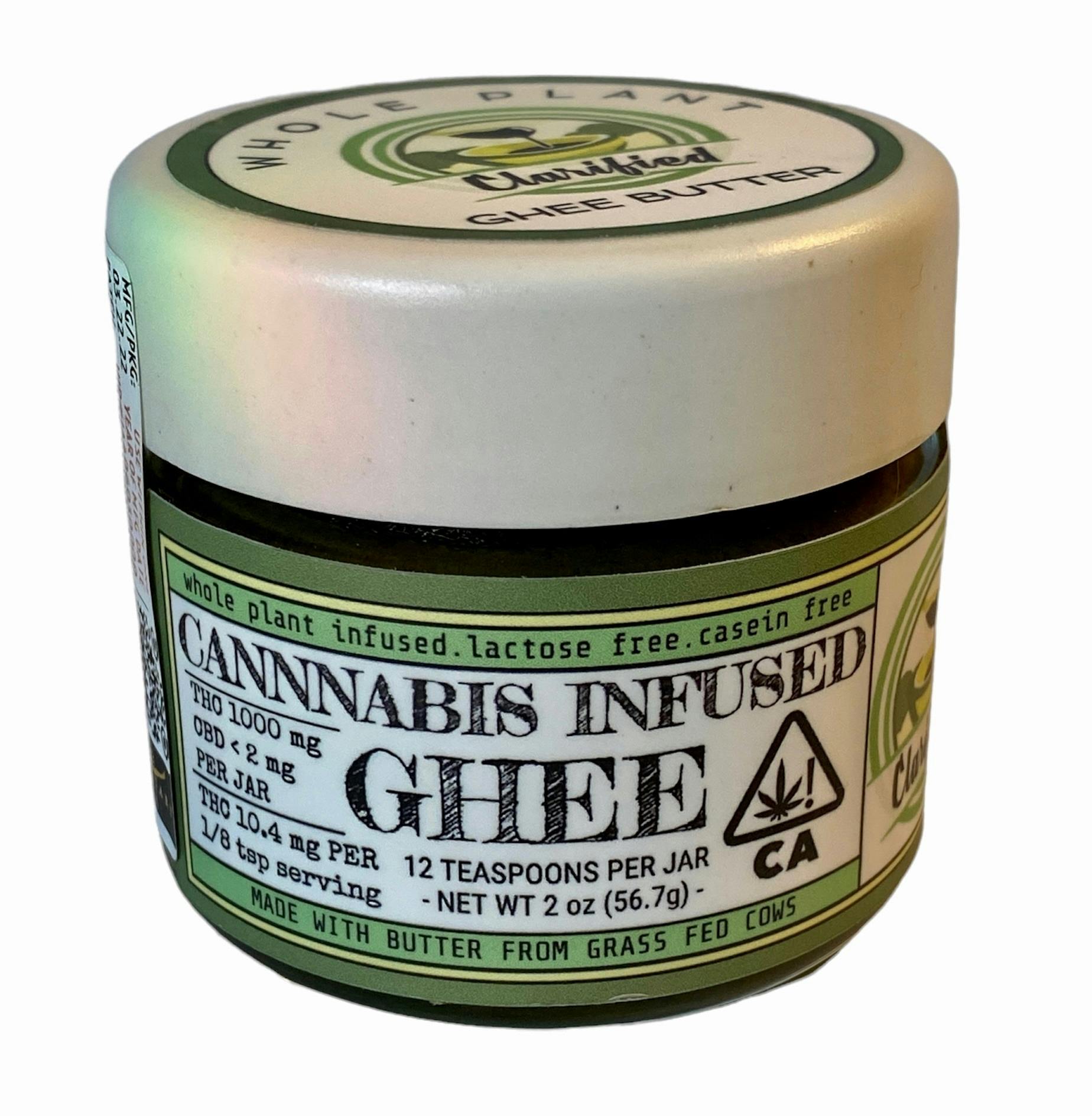 Whole-plant cannabis infused into organic clarified (in-house) grassfed butter. Can be used for baking, as cooking oil or added to meals with our measuring spoon & "ghee" chain dosing guide. Easy to microdose. Add it to any meal, any time of the day. Shelf stable; no refrigeration required. Lactose and casein free; great for people with dairy intolerance.