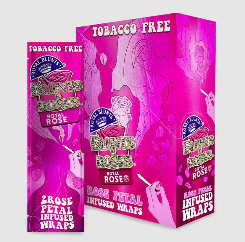 Experience the smooth burn and floral aroma of Royal Blunts Rose Petal Infused Wraps, available now at Doobie Nights Cannabis Dispensary.