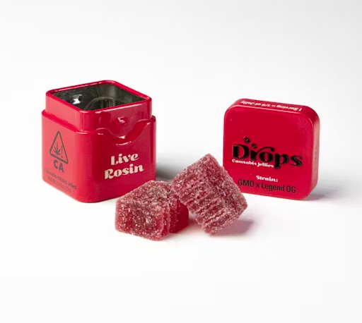 Experience the flavor, strength, and quality of Drops Live Rosin Jellies. Get your Cherry GMO x Legend OG Live Rosin Infused Jellies today from Doobie Nights Cannabis Dispensary.