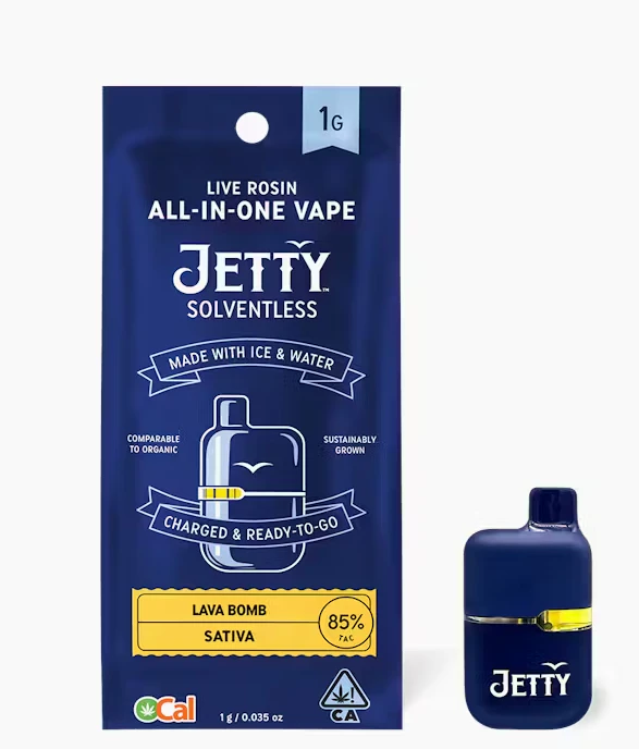 Lava Bomb ignites the senses with a fruity-fuel flavor and mellow heat—thanks to a potent blend of Tropaya’s berry vibes and THC Bomb’s citrusy spice. Jetty Solventless is America's #1 live rosin. It is the cleanest oil available, made from OCal certified bud and extracted using only ice and water. Our unique filtration process removes excess fats and waxes increasing purity (and THC %) while keeping all the tasty terpenes. The result: a light, golden oil, and unmatched flavor profile. OCal is the comparable-to-organic program for cannabis grown and manufactured in California. OCal products are cultivated and extracted without pesticides, synthetic fertilizers, or bioengineering. Pure, potent, and portable, Jetty’s All-in-One Vape delivers everything you want in a vape. CCell's industry-leading Mini Tank hardware features EVOMax ceramic heating. Charged and ready to enjoy, it is designed to go wherever you do.