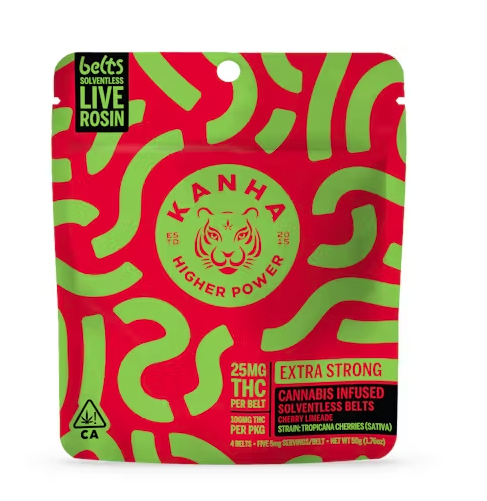 Zing into action with our Cherry Limeade Belts, a punchy Sativa blend crafted for the thrill-seekers. Made with Tropicana Cookies solventless live rosin for a zesty, cerebral effect.