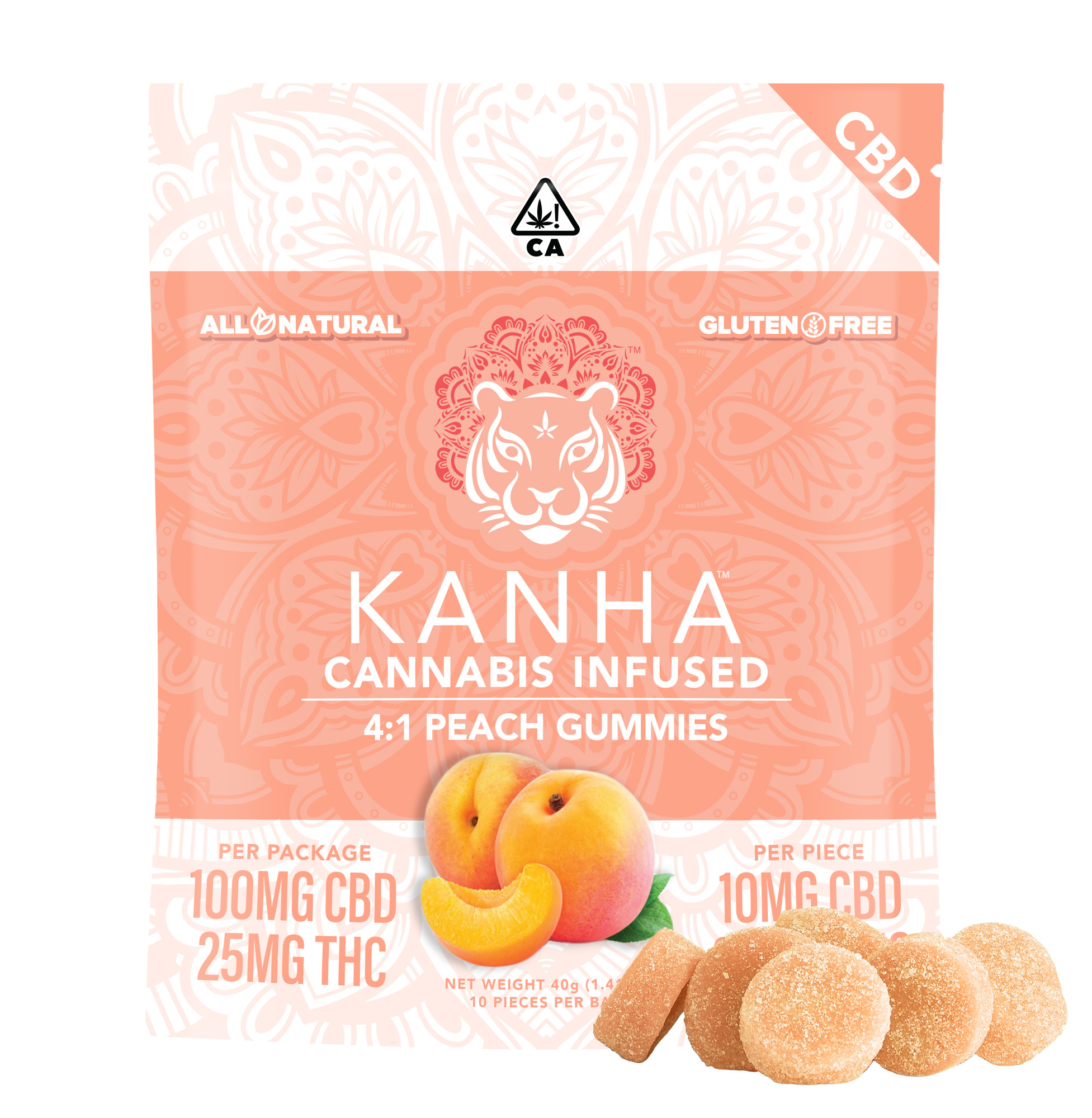 KANHA 4:1 Peach gummies are delectably sweet and feature a CBD-heavy ratio with a microdose of THC to aid in stronger relief. CBD is a non-psychoactive cannabinoid believed to be an anti-inflammatory agent, anxiety suppressant, pain reducer, and more. Widely considered the best-tasting in the industry, KANHA gummies are made with real fruit, all natural ingredients and contain no major allergens.