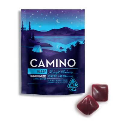 A physical road takes you to a physical place. Camino (“road” in Spanish) takes you to a state of mind. Settle in for a smooth slumber in a cozy lake cabin and let all your worries go. Our Midnight Blueberry gummies pair relaxing terpenes with a hint of chamomile and lavender for a soothing, restful effect that’s boosted by a key ingredient- CBN. These gummies contain 5MG of THC and 1 MG of CBN to support not just your ability to fall asleep, but to encourage a more restful night’s sleep overall. Even better, this ratio minimizes the “cannabis hangover.” Our formulation team used the principles of the entourage effect to take two cannabinoids paired with isolated terpenes to create a Camino that encourages the best possible night’s sleep.