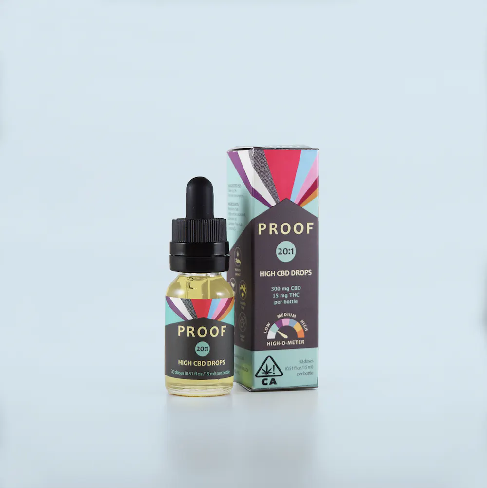 Proof’s 20:1 (20 parts CBD for every 1 part THC) tincture is a minimally intoxicating product with a generous amount of CBD. Perfect for those new to cannabis or all-day consumers looking for the beneficial effects of full spectrum CBD. Ideal for daytime and continuous use. Also great for pet owners looking for relief from stress or discomfort.
