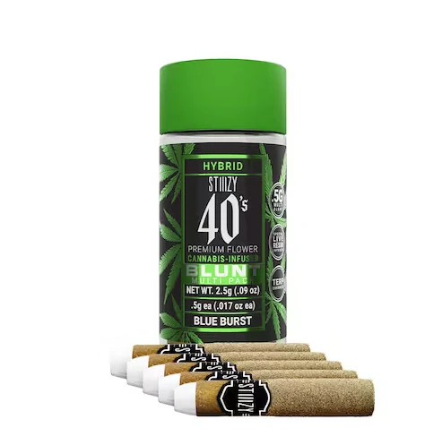 STIIIZY 40’s Mini Blunts Multipack is filled with premium grown STIIIZY cannabis and packed in individual glass vials to maintain freshness and potency. Each 40’s Mini Blunt is rolled with 100% tobacco free, kief dusted hemp wraps which packs a flavorful and potent punch with every exhale, and the tightly secured custom glass tips have been perfected to provide an amazing and consistent burn every time. The STIIIZY 40’s Mini Blunts Multipack is reinventing your high experience by being one of the first to introduce 40% THC and total cannabinoids potency with special live resin infusion.