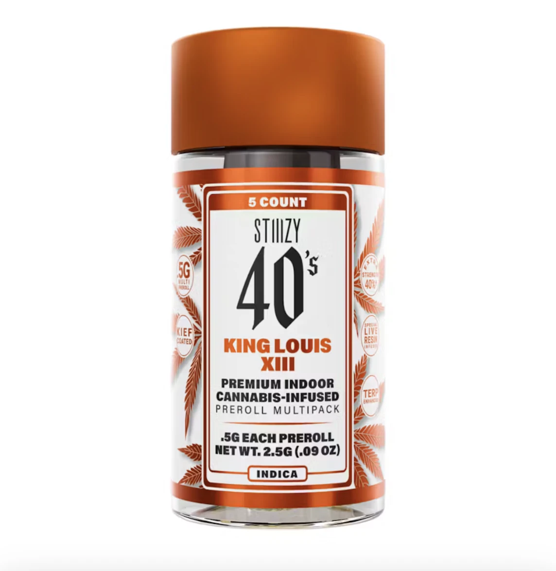 Elevate your pre-roll game. Stiiizy 40s pre-rolls are setting the standard with high potency, cannabis infused joints coated evenly with kief. Using our proprietary live resin infusion methods, we’ve designed every pre-roll to offer 40%+ THC potency with a unique flavor profile. With a smooth inhale and tasteful exhale, each and every Stiiizy 40 is packed with indoor grown flower, specifically made to ensure a potent and long-lasting high. Spark up the 40s.