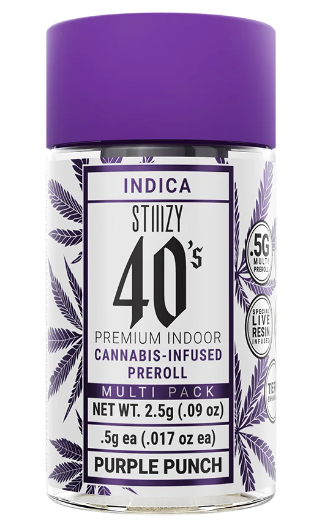 Stiiizy is setting the standard in the pre-roll game with the most revolutionary and innovative products. Elevate your pre-roll game. Stiiizy 40s pre-rolls are setting the standard with high potency, cannabis infused joints coated evenly with kief. Using our proprietary live resin infusion methods, we’ve designed every pre-roll to offer 40%+ THC potency with a unique flavor profile. With a smooth inhale and tasteful exhale, each and every Stiiizy 40 is packed with indoor grown flower, specifically made to ensure a potent and long-lasting high. Spark up the 40s.