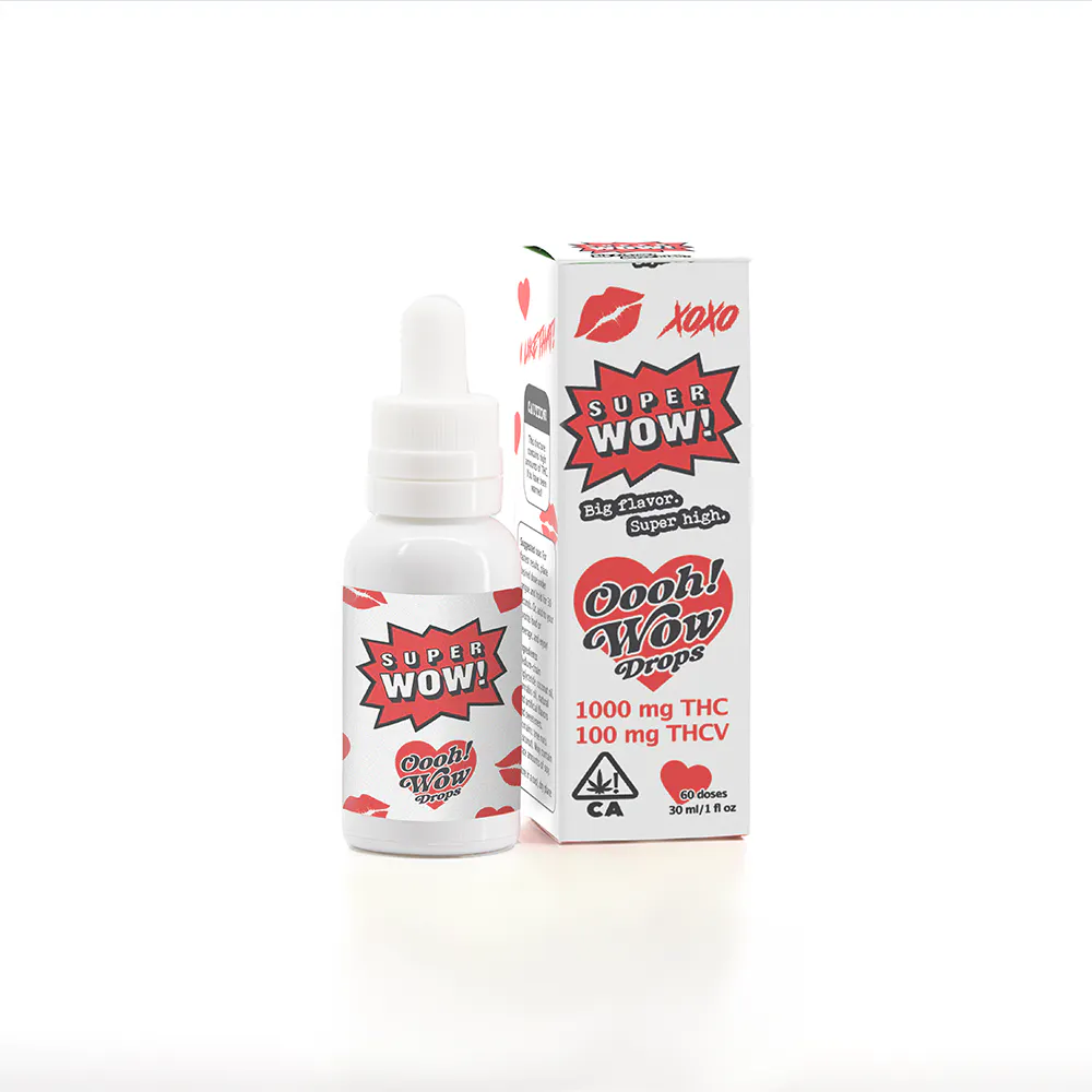 Super Wow has gone wild with our new Oooh! Wow drops. With a sensual berry flavor and a splash of THCV to crank up the heat, these drops are your new foreplay companion. A high potency, high sensation option to partner with any intimate moment, and an intimate treat to share with any partner. Get your "Oooh!" on with this playful new flavor.