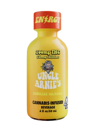 Rise and shine with the Uncle Arnie's 100mg THC Sunrise Orange Shot. This two ounce shot, has Sunny D vibes and is packed with 150mg of Caffeine. Which is about 2 shots of Espresso, so try skipping that coffee and adding this to your morning smoothie. Perfect for that on-the-go morning hustle. Just like the classic 8 ounce drinks, these are infused with nano-emulsion technology. You can control your high or get as lit as you want by using the dosed measurement system. Expect your rocket to blast off in 20-40 minutes.